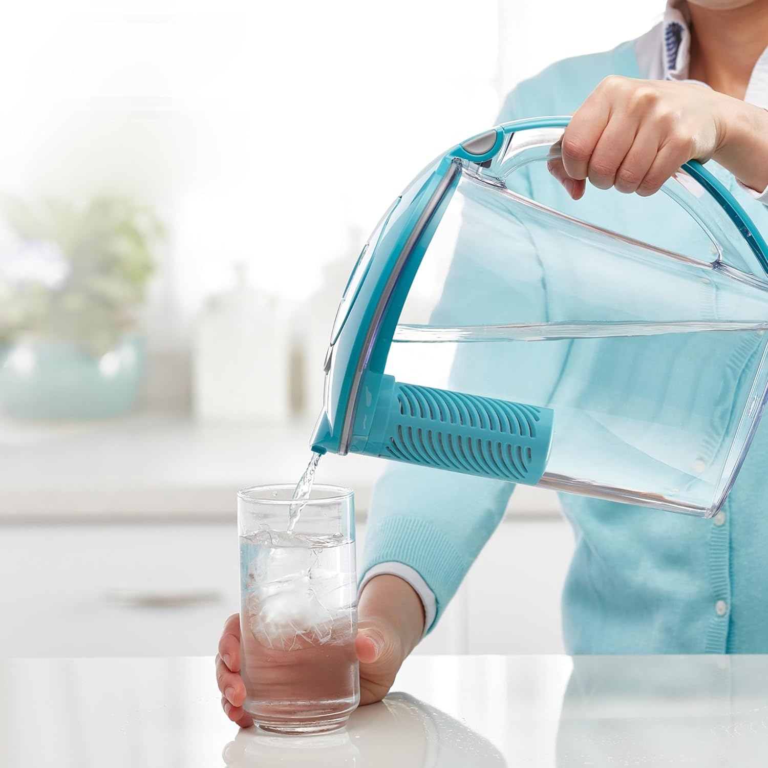 Purecartly Filter as You Pour 10-Cup Blue Plastic Water Filter Pitcher